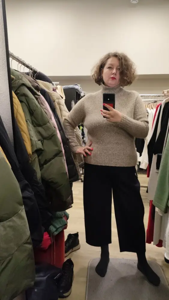 Брюки. Действительно лучше сидят на более рослых девочках, нежели я, но они настолько точно сели на мои немалые параметры и такое лекало шикарное, что живота не видно. А длина получилась практически полная. Жилет великолепен.