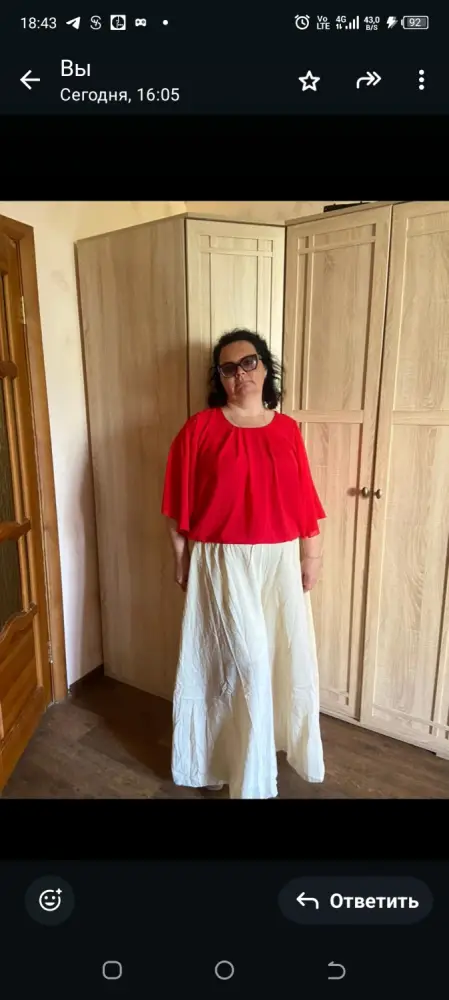 Отличные брюки-юбка, скрывает живот, стройнит, несмотря на светлый тон- взяла беж. 54-48 размер. На рост 162 см на кпблцке - отлично!